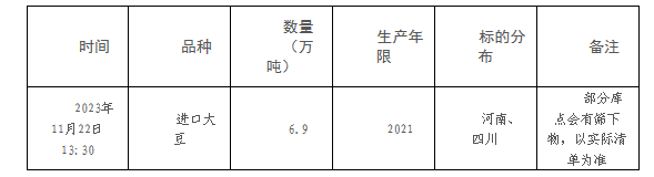 受中储粮油脂有限公司委托,2023年112213:30在国家粮食和物资储备局粮食交易协调中心及联网的各省(区、市)国家粮食交易中心组织开展进口大豆竞价交易,请交易会员通过国家粮食交易中心官网(www.grainmarket.com.cn)“用户中心”,登录国家粮食交易平台,在专场列表中选择“政策性粮食轮换交易”参与交易。现就有关事项公告如下(重点提示内容详见加粗字体部分)